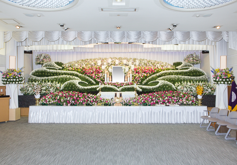 花祭壇のデザインは、お客様の要望に応じて設営いたします